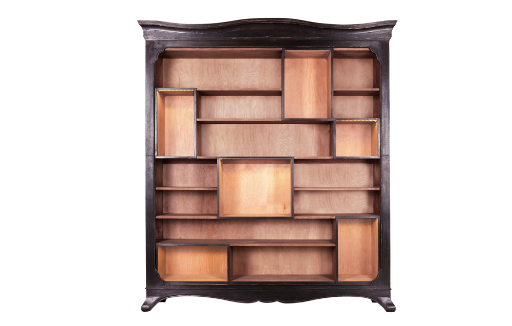 cabinet and a library in one, with enlightened spaces to present unique objects surrounded by space for books.
