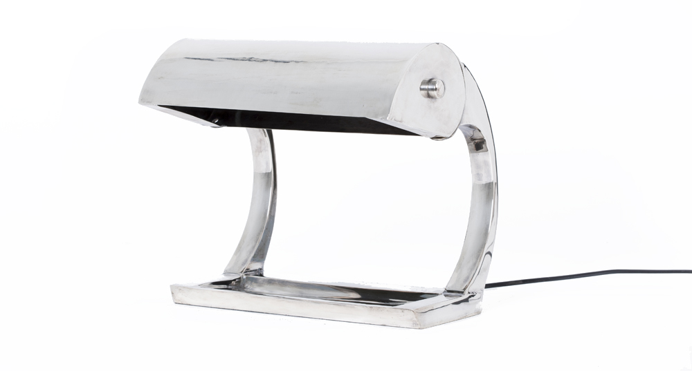 Desk lamp Othon is a design inspired by the old antique desk lamps, many times made in brass finish and with a funny switch at the side. Othon is a more modern streamlined version of this classic and designed with a space where your most favorite pens or pencils can be exposed in the spotlights. The desk lamp is made in messing, with an antique silver finish.